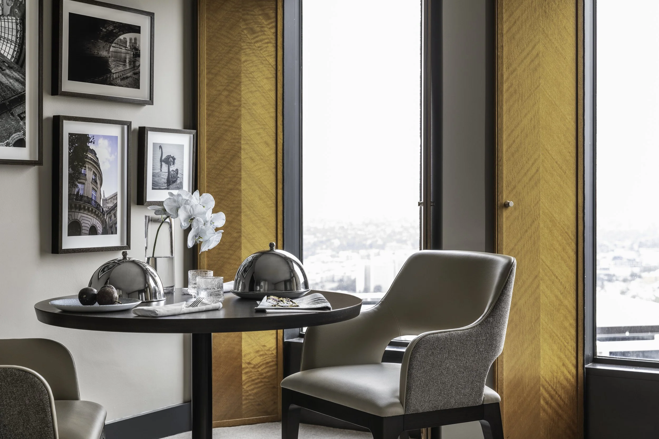 The interior design intention was that the rooms have a Parisian apartment feel, populated with photographs hung in a traditional French ‘Salon’ style. Global Art Projects was engaged to commission 2,500 photographs for 350 hotel rooms at Sofitel Melbourne On Collins from both artist Jon Rendell and Claire Ropartz.